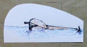 The procedures to correct are not hard but they do take some effort and coordination between among crew members. It is a little harder to correct with one crew member. One crew member gets near the end of the mast and pushes up while treading water. The other pulls at the hull to right the hull. It takes a little time since water does not spill quickly from the sail. You don’t work against the water; rather, you rotate the hull in the water. The boom has to be loose as well so the cloth of the sail will pull up from the water but not gather or trap it. Once the mast is up, the crew members can splash out what they can then carefully enter the hull and splash most of the rest of the water out. During all of this they have to keep the boom of the sail so it can flap in the wind freely. After most of the water is out, the crew can regain their normal positions, pull in the boom so the sail begins to work the wind, and off you go.