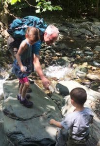 The stream bed was interesting to me and the children with me. I bent over to show rocks, point out some snails, and show them how water acts in a mountain stream. The person with the camera grabbed the picture. She was watching me as well as the children. She was assessing all the time. What is this new husband like around children?