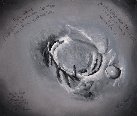 Aristoteles and Mitchell are pretty good sized craters. Craters are the evidence of the violent impacts across the lunar surface give evidence of an incredible catastrophe. It is reasonably concluded by several biblical creation scientists that the event was days in length and may have occurred at the beginning of the Genesis flood event. it is a matter of history or historical science, which is different than observational science, since no one was there.