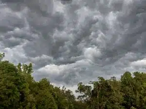 The same scene during the frontal edge of a thunderstorm last summer showed vivid grey swirling clouds but the trees were nearly silhouetted. Again, the detail in the trees was hidden.