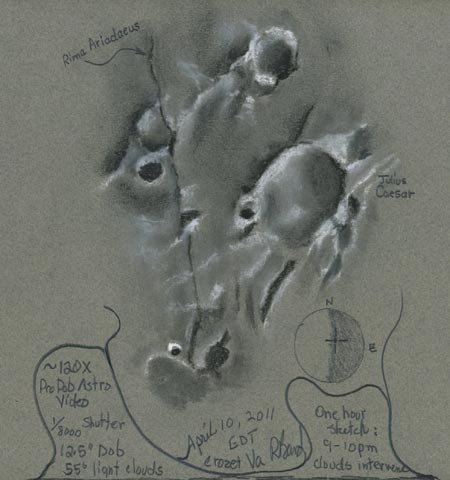 Most of the time I notice craters and the boundaries of “seas” on the moon. Two observing nights in middle April were entirely different. I noticed severe separations on the lunar surface. Sometimes they are called walls; sometimes they are sharp valleys. They are evidence of something catastropic and they are permanent. I sketched the first night thinking about it. The second sketch was made a few days later. Both sketches are on the Inspiration Stories on the www.christworksministries.org site along with the full story. In short, after the two nights I began thinking about walls in the hearts of men–especially the walls that separate us from God, and what it takes to mend them and set us free. I can attest to the truth of the the Bible: I cannot repair the walls of my heart. But there is One who can.