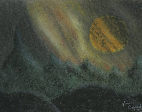 The sketch below reminds me of her ability to see a situation and capture something from it. My moon rise sketch at the same occasion was plain, but she captures the color and the movement of clouds past the disc in an impressionistic style that I cannot duplicate. And, you can follow a story with pictures and sketches that we posted just a few weeks ago before we knew we would be dealing with cancer again. The words and points remain true, regardless of the change in our circumstances. Follow this link to see it: http://christworksministries.org/inspiration_20_year_walk