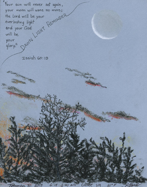 From the play of dawn’s light on a waning moon to light play among the stars in deep space, there will come a time that the believer’s light will be the Lord Himself. As I considered my observation of the waning crescent before sunrise on the last day of November, I recalled the scripture in Isaiah that is… Continue reading