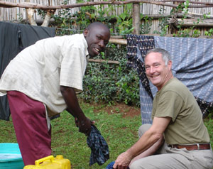 alan-and-roland-for-storyAlan is from Uganda. One night we were talking on the porch of the home where he lived and we were staying. Rain was coming down in torrents. We talked about being thankful to God and the heavens that He created. I mentioned that the storm would end in about an hour and we would probably see a full moon rise through receding clouds. He looked amazed that I would know this, but I explained how the thunderstorms formed and typically moved but also how the skies typically cleared afterwards. I knew the full moon was to rise that night. An hour later we went together to the East side of the property and watched a glorious moon rise. The picture above was taken a few days later when he was helping me learn how to wash clothes by hand–properly. My first attempt was bad, so I asked him to show me. My wife caught it on camera. But he did much more. He was a companion on trips; I went to prayer meetings and services with him; he showed me his pineapple crop that he was growing; and I observed him taking care of orphan children many evenings. He was truly a working pastor with a good heart.