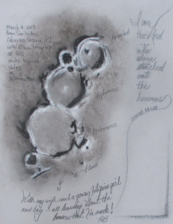 I added the observing sheet detail for the equipment, the crater identification, the verse of Scripture that gives the Creator credit for what I observe, and the comment. I smile as I explain, “If you do all these things and turn it in with a signature, I would give you an “A”.