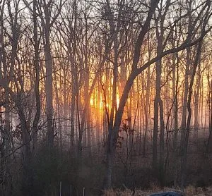 I gaze out the eastern windows to watch the redness of the sky slowly turn brighter. Squirrels come alive in the trees; birds go through their early morning feeding routine. As the sun gets higher, the forest floor begins to get brighter. By midmorning, long shadows disappear and the sun dominates.